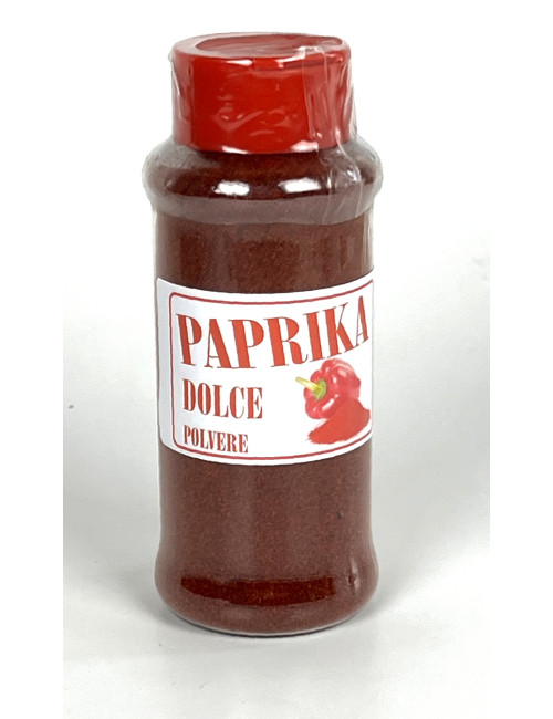 La paprika dolce è una spezia ottenuta dalla macinazione di peperoni rossi essiccati della varietà Capsicum annuum, la stessa dei peperoncini. a defferenza di quest’ ultimo la paprika non è assolutamente piccante.È particolarmente adatta per insaporire salse, burro aromatizzato, formaggi, carni e verdure.